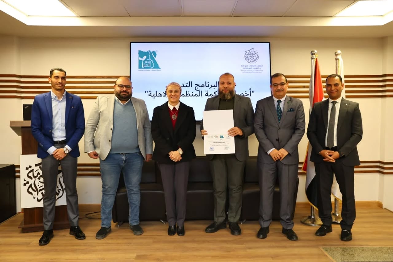 The ceremony was attended by Counselor Mahmoud El-Margany, Deputy Head of the Egyptian Judges Club and Vice President of the Court of Cassation, who highlighted the importance of strengthening legal frameworks in response to digital transformation, as well as Dr. Rehab Farag, General Director of the General Administration for Human Capacity Development at the Institute, who emphasized the Institute’s commitment to delivering specialized training programs that promote good governance and institutional efficiency.